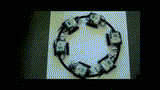 複数の車両を近接した車間距離で走行させることで交通量を増大させる技術を隊列走行と呼びます.隊列走行は,交通物流の増大と燃費性能の改善のために有効です.しかし,短い車間距離では,各車両の速度制御が難しい.例えば,LEGOマインドストーム5台を円形で走行させる(以下の写真)と.渋滞することなく安定した走行を実現しています.しかし,1台増えて6台になると走行は不安定となり,走行と停止を繰り返すようになります.そこで,本研究では多台参照モデルを用いて速度制御する方法を研究しています.